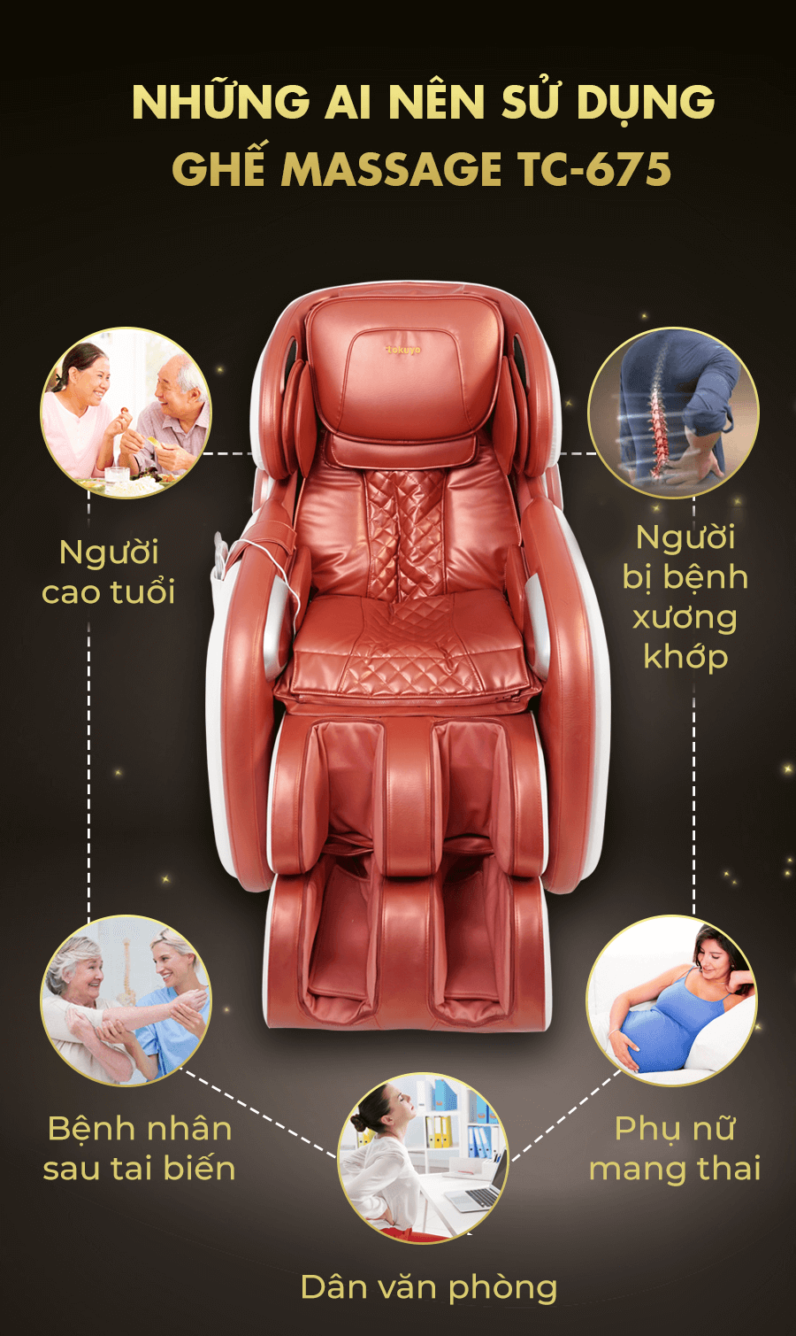 Dưới đây chính là những lợi ích tuyệt vời của chiếc ghế massage TC-675 mang lại: