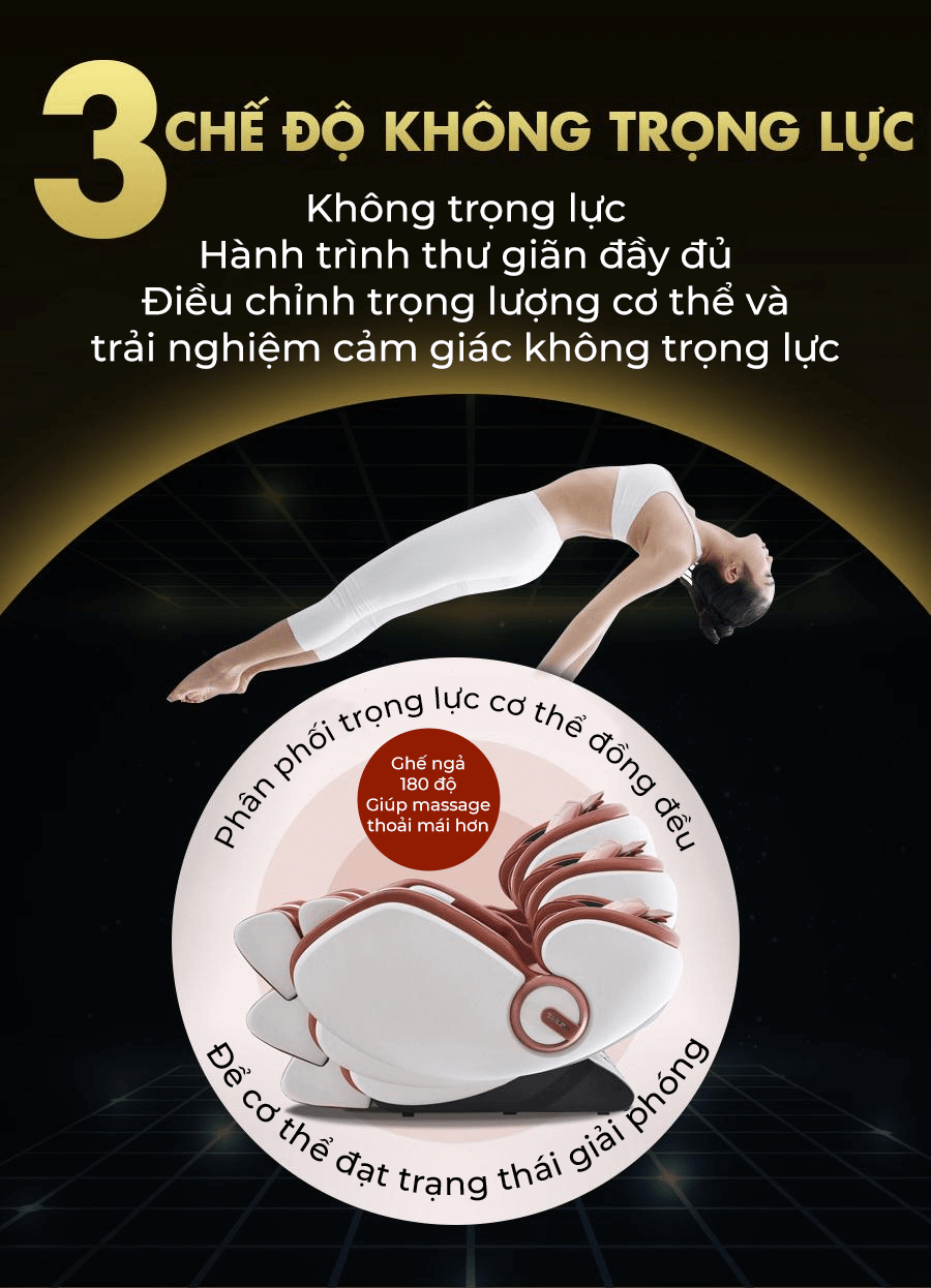 Chế độ không trọng lực: Chức năng không trọng lực đem lại cho người sử dụng cảm giác mới lạ, massage trong trạng thái không có trọng lượng